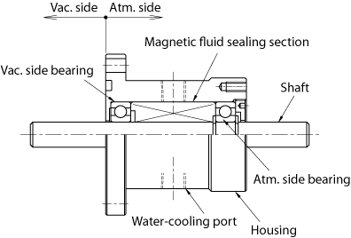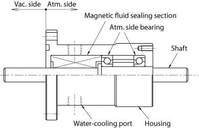 磁流體密封標準品無水冷情況下、能夠安全使用的標準溫度範圍。表示的是磁氣密封的外殼安裝面或者真空側軸線段測試的溫度。